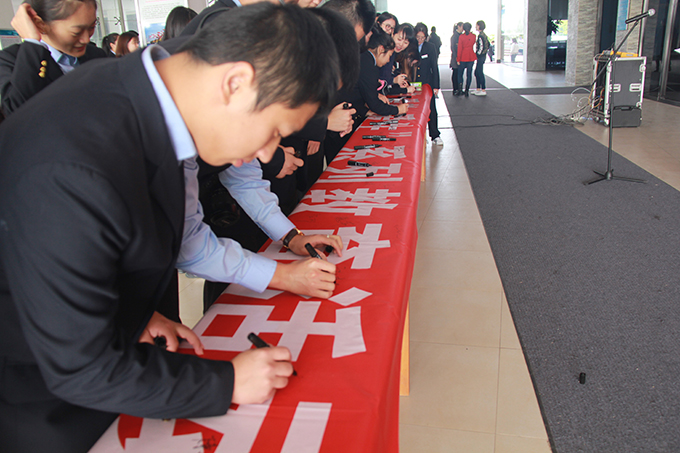 启动仪式上,校党委委员、工会主席刘相发表了热情洋溢的讲话,对本次活动的意义做了高度评价。教师代表——港口管理学院何伟老师向在场师生做庄严承诺,校党委委员、组织部部长江爱芬宣读了《“爱校 爱教 爱生”倡议书》。在校党委副书记胡国光宣布活动正式启动后,在场的师生纷纷在横幅上签名响应“三热爱”活动号召。