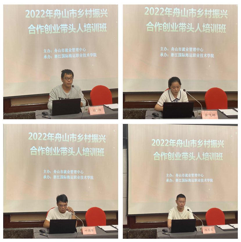 六名学员代表就本次乡村振兴合作创业带头人培训进行了学习心得的分享与交流,他们认为本次培训效果显著,受益良多,同时也表示会积极推广乡村振兴合作创业模式,为实现海岛共富贡献力量。