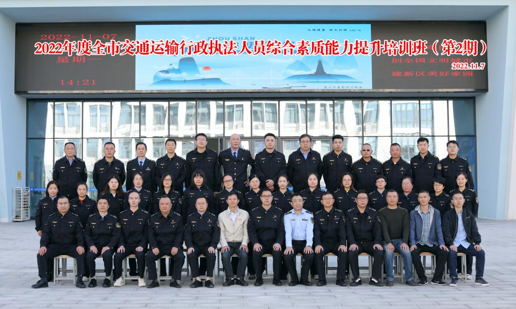 11月7日,第二期舟山市交通运输行政执法人员培训班开班仪式在社会服务中心303教室举行。舟山交通运输执法队副队长洪钰皓、法制处处长包恒毅,开班仪由港口管理学院院长王贵斌主持。