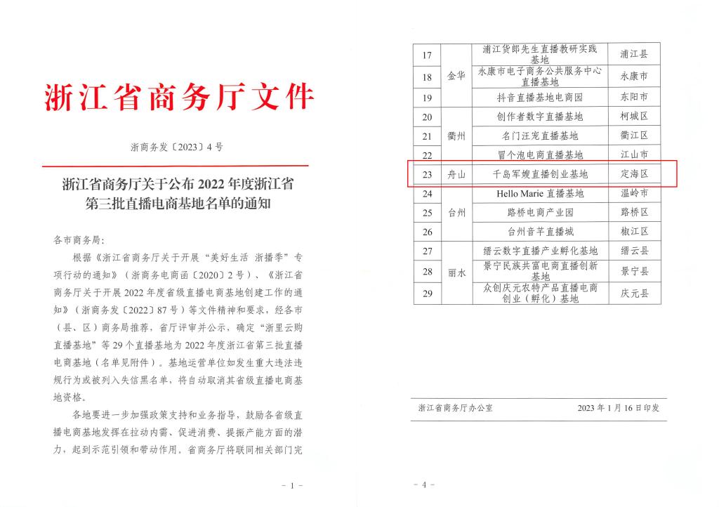 近日,浙江省商务厅发文公布了2022年度第三批省级直播电商基地名单,我校东海教育学院与舟山市美线网络科技有限公司联合共建的千岛军嫂直播创业基地成功获评浙江省第三批直播电商基地,实现舟山市零的突破。