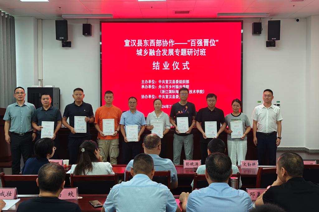 为积极落实东西部协作国家战略,推进学校与宣汉县的合作协议落地见效,7月1日-12日,由中共宣汉县委组织部主办,学校东海教育学院承办的宣汉县东西部协作——“百强晋位”系列专题第一阶段研讨班在中共宣汉县委党校圆满结束。本阶段共开展城乡融合发展专题、党建引领乡村振兴、文旅融合发展暨文旅消费提升共3个专题,宣汉县各部门、乡镇村社、重点企业等负责人共计229人参加培训。